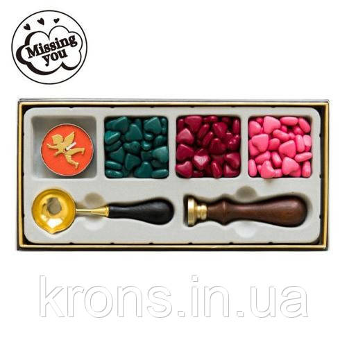 -14%Набір для сургучних печаток, 3 кольори, свічка, ложка, печатка Missing You
