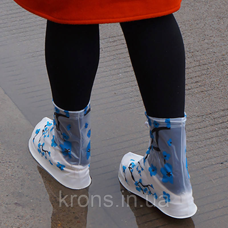 Резинові бахіли Lesko SB02 Синя сакура 27.5 см на взуття від дощу захист від бруду