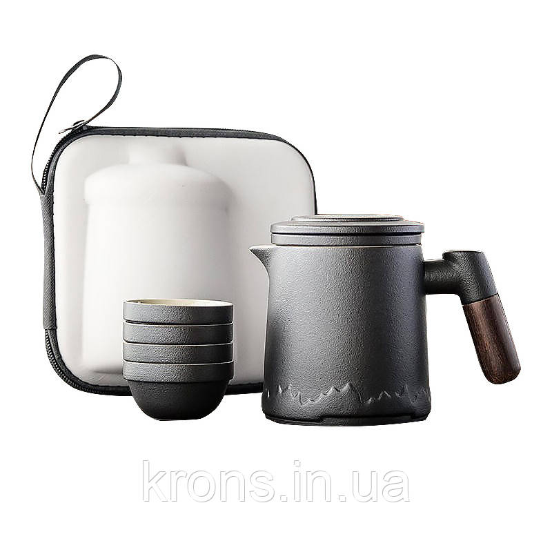 Дорожній чайний набір заварник + 6 піал із чохлом 350 ml скляний Black